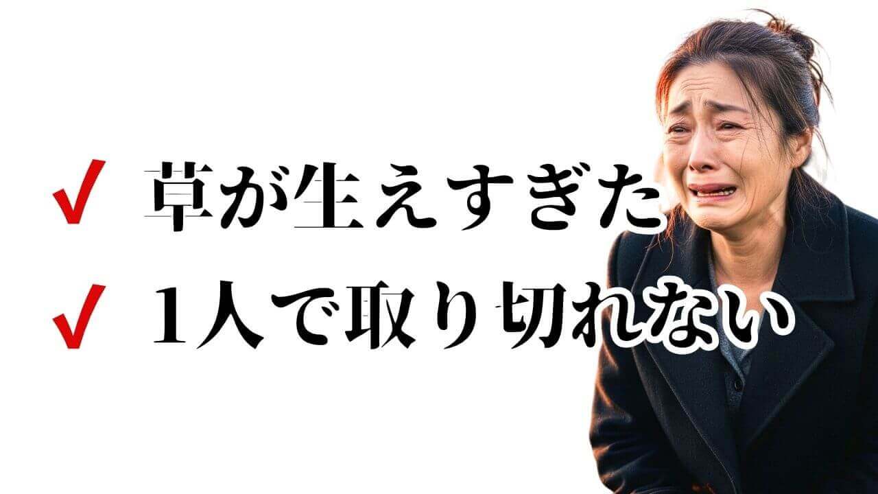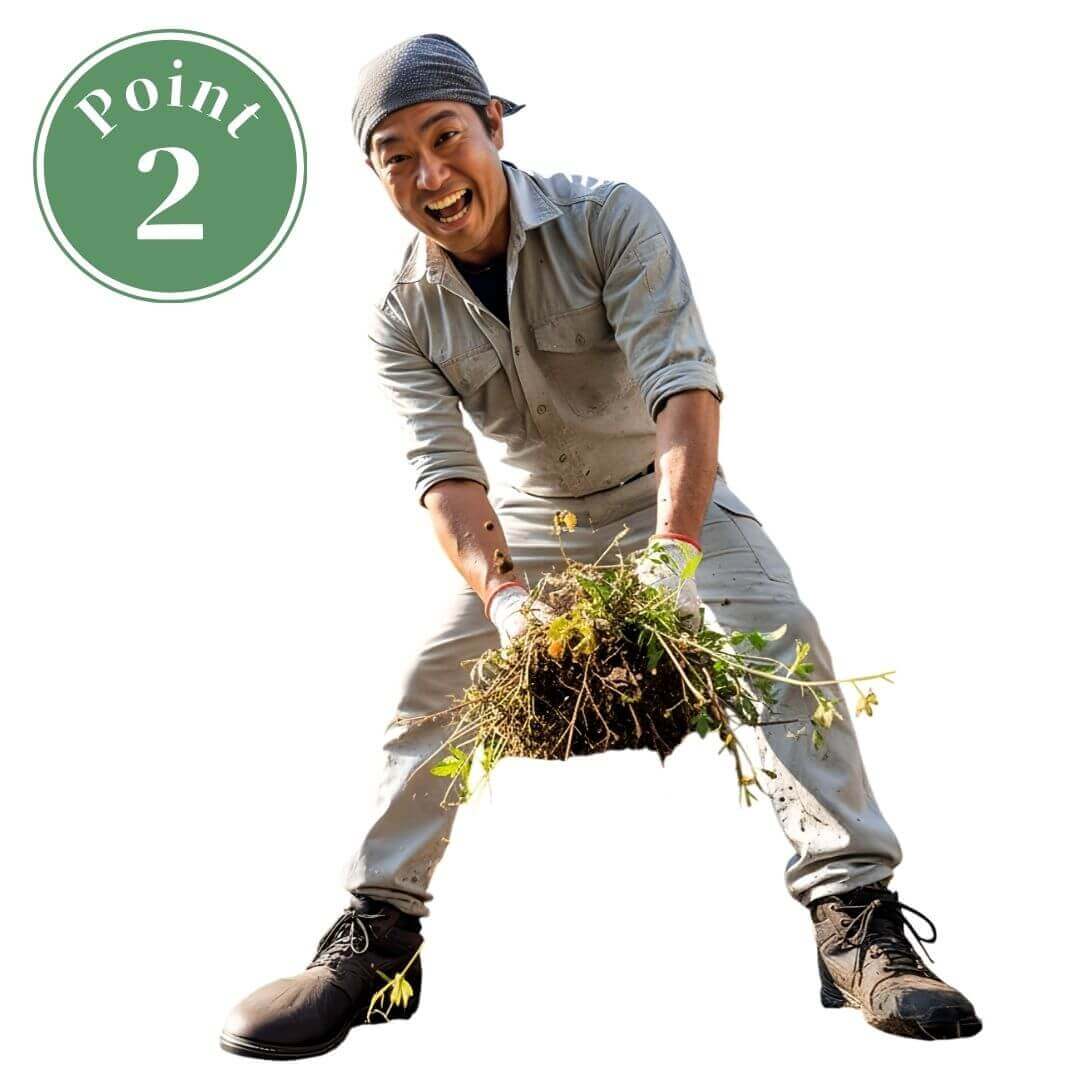 作業量が多く、草取りを諦めてしまった方。長年放置して自分でやることが難しい状況になってしまった方も大歓迎です。長時間の草取りは身体によくありません。